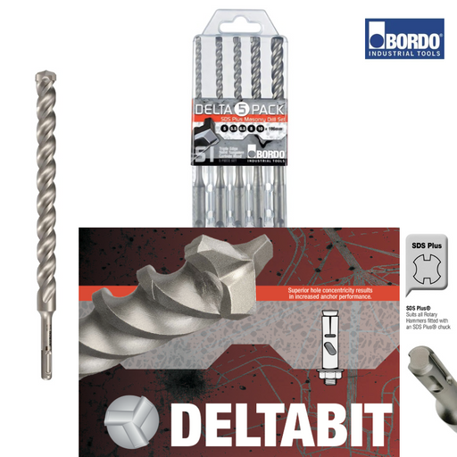 5 Pce 5-10mm SDS Plus Deltabit Set SDS Plus DELTABIT 5 piece set OAL 166mm The Bordo range of Deltabit SDS Plus and SDS Max solid tungsten carbide...